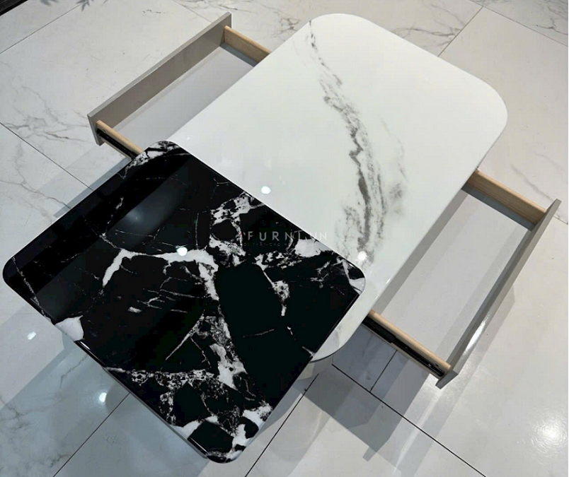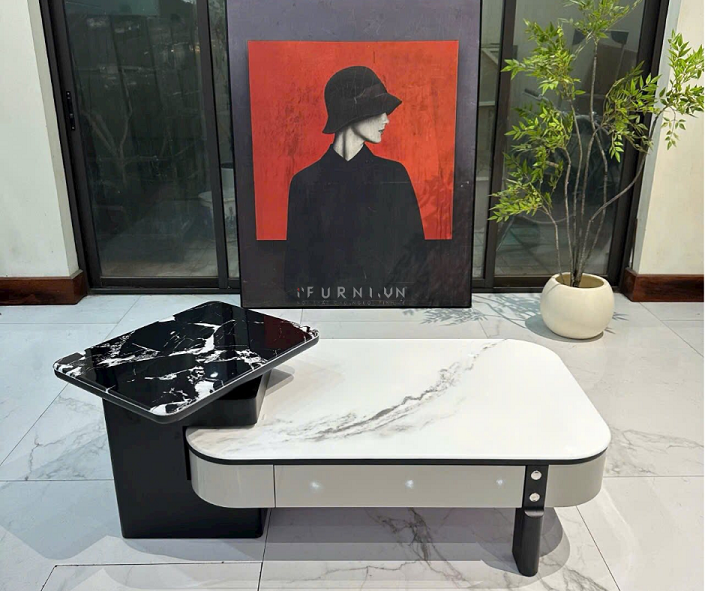 Mang thiết kế tối giản nhưng đầy cuốn hút, bàn trà Leneva kết hợp hài hòa giữa hai tông màu đen – trắng cùng đường vân đá sang trọng. Kiểu dáng bo góc mềm mại, chất liệu bền đẹp và bố cục thông minh giúp sản phẩm trở thành điểm nhấn hoàn hảo cho phòng khách hiện đại.