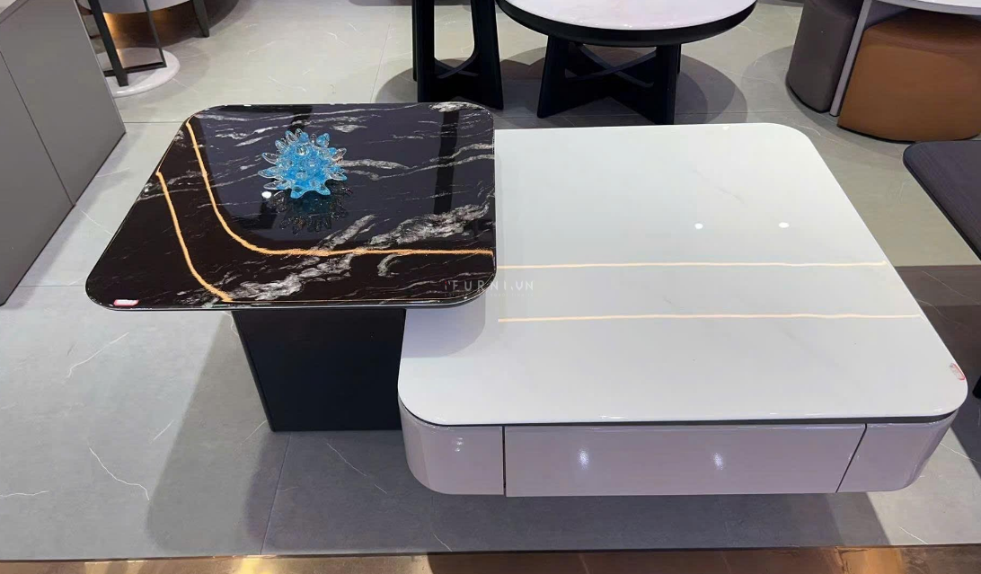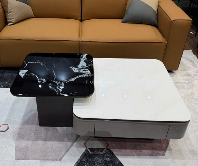 Bàn trà Renova 2 sở hữu thiết kế hiện đại với sự kết hợp hài hòa giữa khung chân gỗ MDF chắc chắn và mặt đá cao cấp sang trọng. Hai bàn đôi với tông màu đối lập tạo điểm nhấn độc đáo, phù hợp cho mọi không gian phòng khách hiện đại.