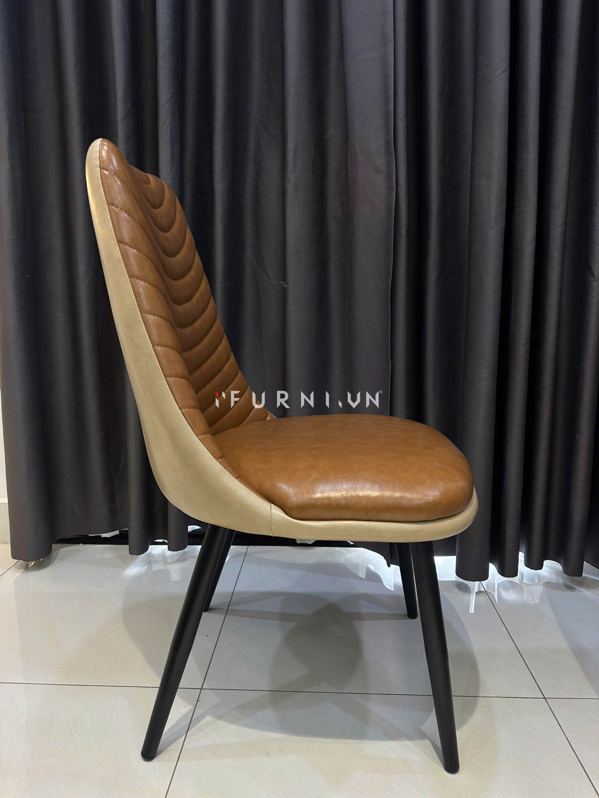 Mang phong cách hiện đại pha chút tinh tế, mẫu ghế ăn này nổi bật với phần tựa lưng bo cong mềm mại cùng các đường chỉ may nổi hình vòm tạo điểm nhấn độc đáo. Chất liệu bọc da cao cấp không chỉ đem lại cảm giác êm ái khi ngồi mà còn dễ dàng lau chùi, giữ cho ghế luôn sạch sẽ và bền đẹp theo thời gian.
