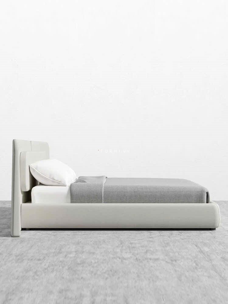 GIƯỜNG BỌC NỆM BELLORA chiếc giường mang phong cách hiện đại tối giản, với đường nét vuông vức và thiết kế thấp sát sàn. Màu trắng tinh tế kết hợp cùng tone màu tạo cảm giác thanh lịch, sang trọng. Phần đầu giường được thiết kế độc đáo, tạo điểm nhấn hài hòa cho không gian ngủ.