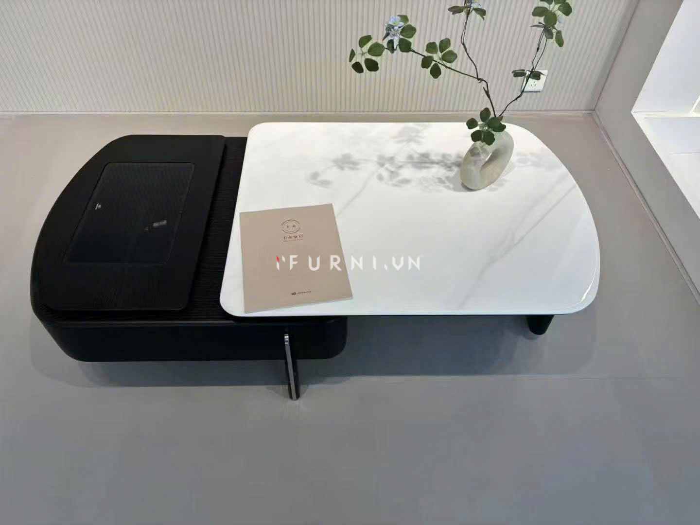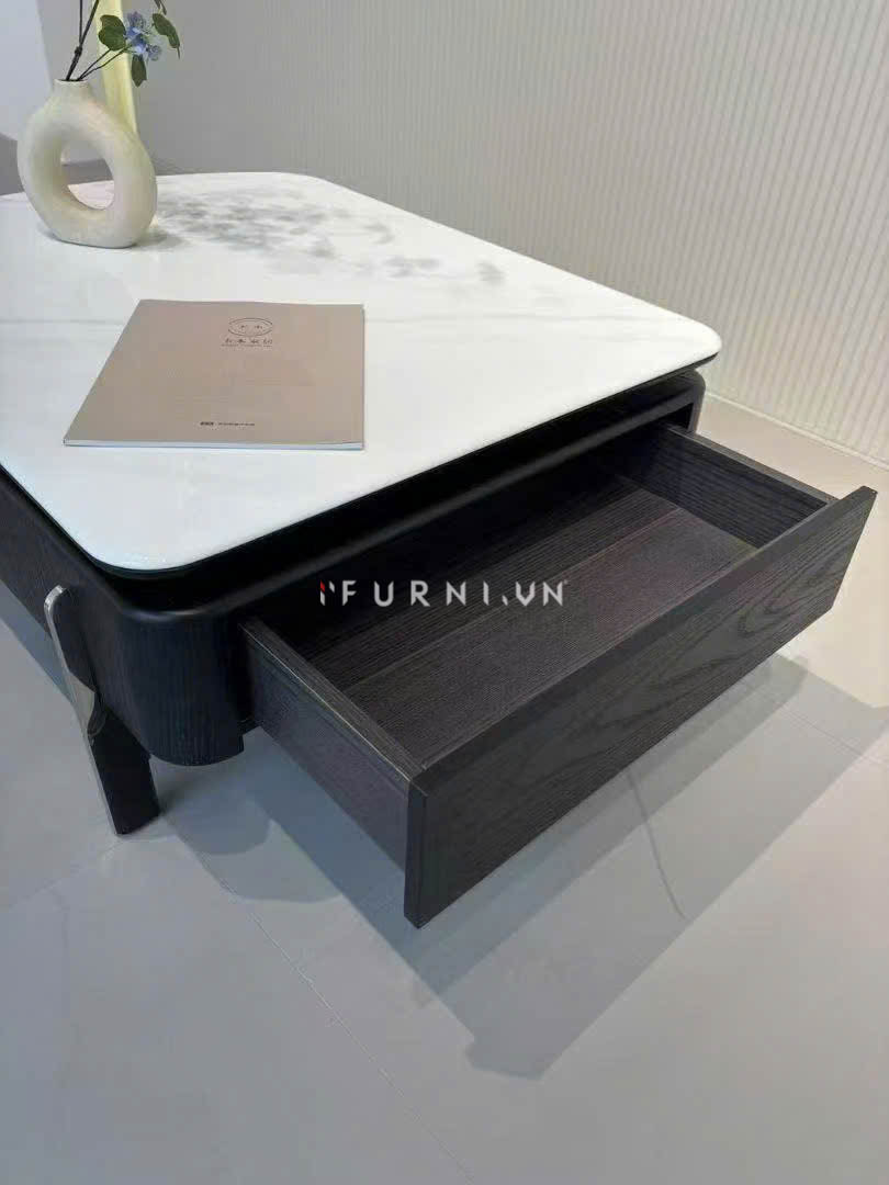 Bộ bàn trà mang phong cách hiện đại với thiết kế mặt bàn đá công nghệ, phủ lớp sơn 2K giả vân đá tinh xảo. Bề mặt sáng bóng, sắc nét từng đường vân, không chỉ sang trọng mà còn chống trầy xước, chống thấm và dễ dàng vệ sinh trong quá trình sử dụng. Phần khung được làm từ gỗ MDF cao cấp, gia công kỹ lưỡng để đảm bảo độ chắc chắn và tuổi thọ lâu dài. Kết hợp cùng tone màu đen – trắng đối lập, sản phẩm mang lại vẻ đẹp thời thượng, vừa thanh lịch vừa cá tính, phù hợp nhiều phong cách nội thất khác nhau.
