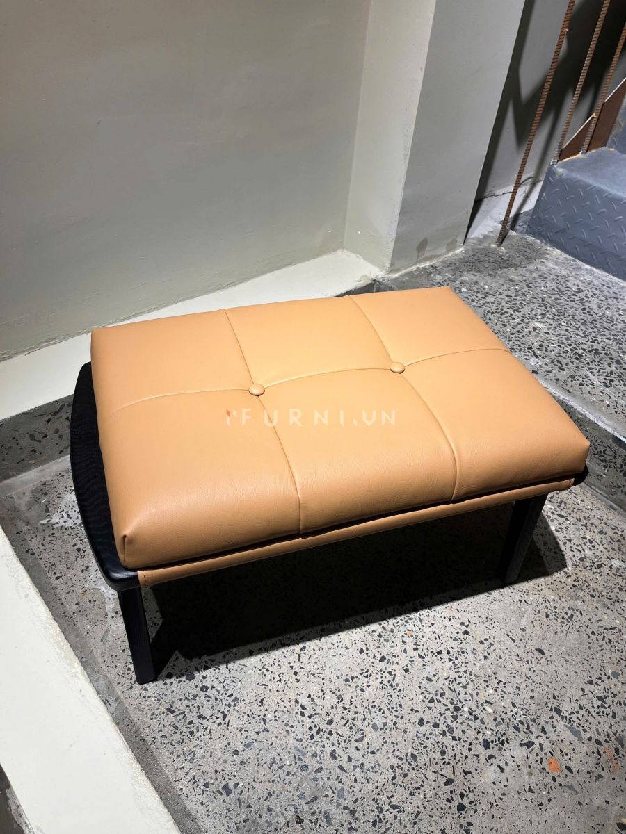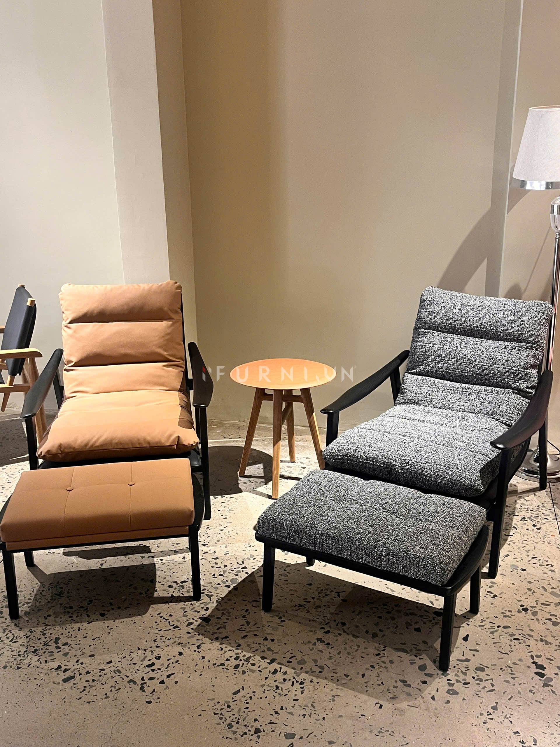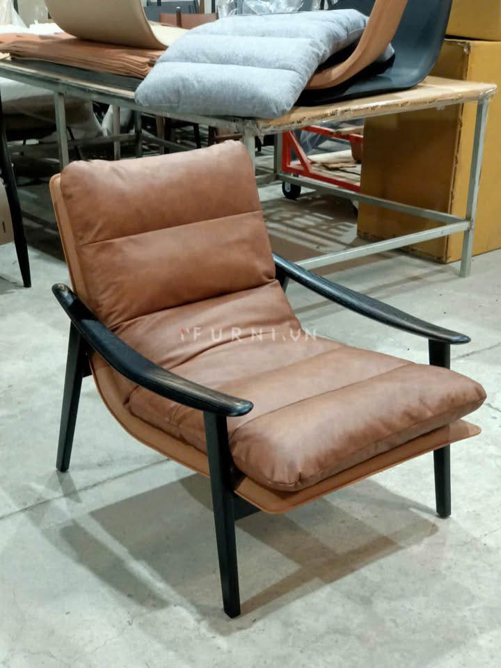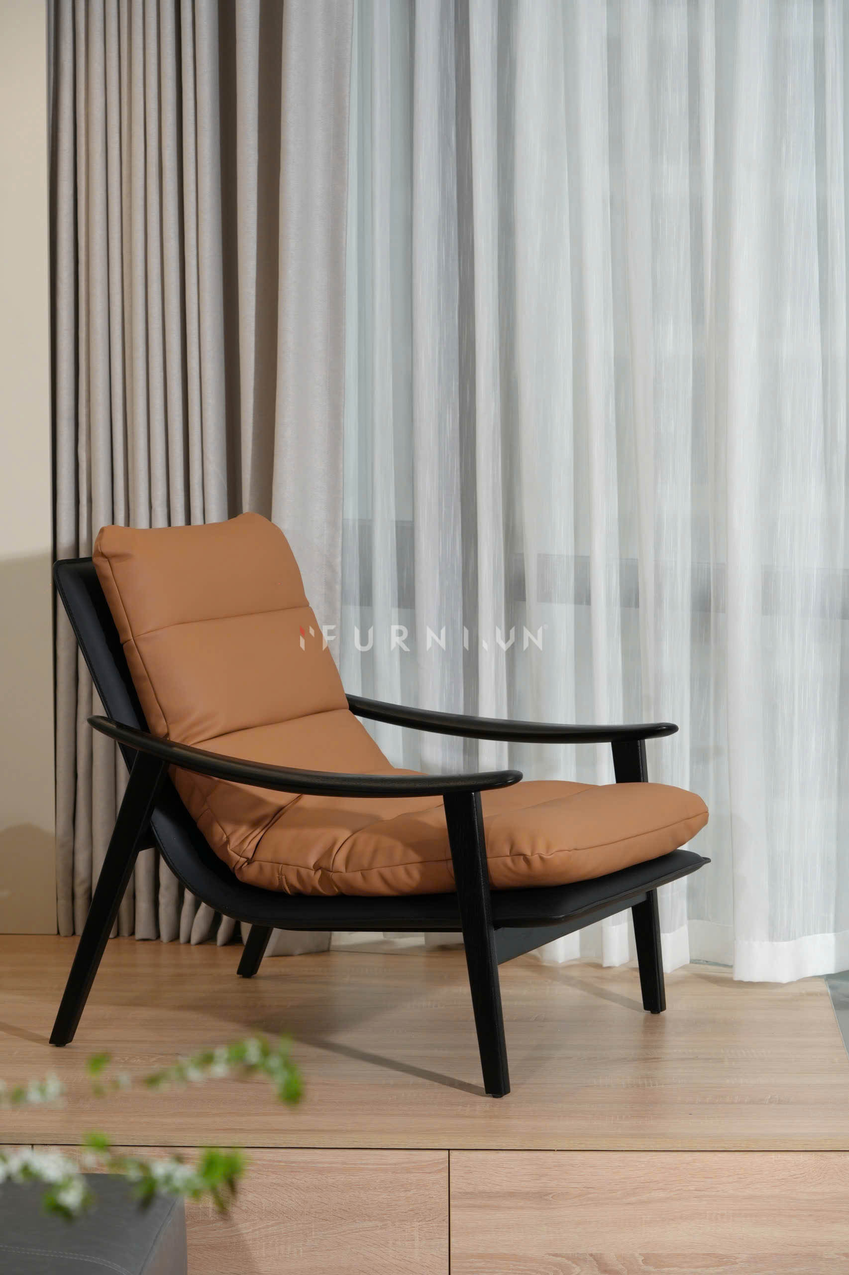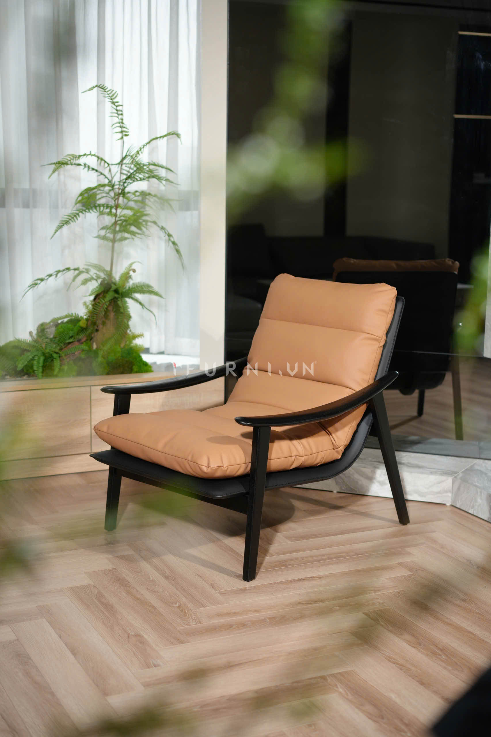 DIME DILLON sở hữu thiết kế lưng hơi ngả, mang đến cảm giác thư giãn tự nhiên cho người dùng. Khung ghế làm từ gỗ ash chắc chắn, phần tựa lưng bọc da yên ngựa công nghiệp tạo điểm nhấn sang trọng. Nệm ngồi rời bọc vải hoặc da theo bảng màu đa dạng, đi kèm đôn gác chân tiện dụng – hoàn hảo cho mọi khoảnh khắc nghỉ ngơi.
