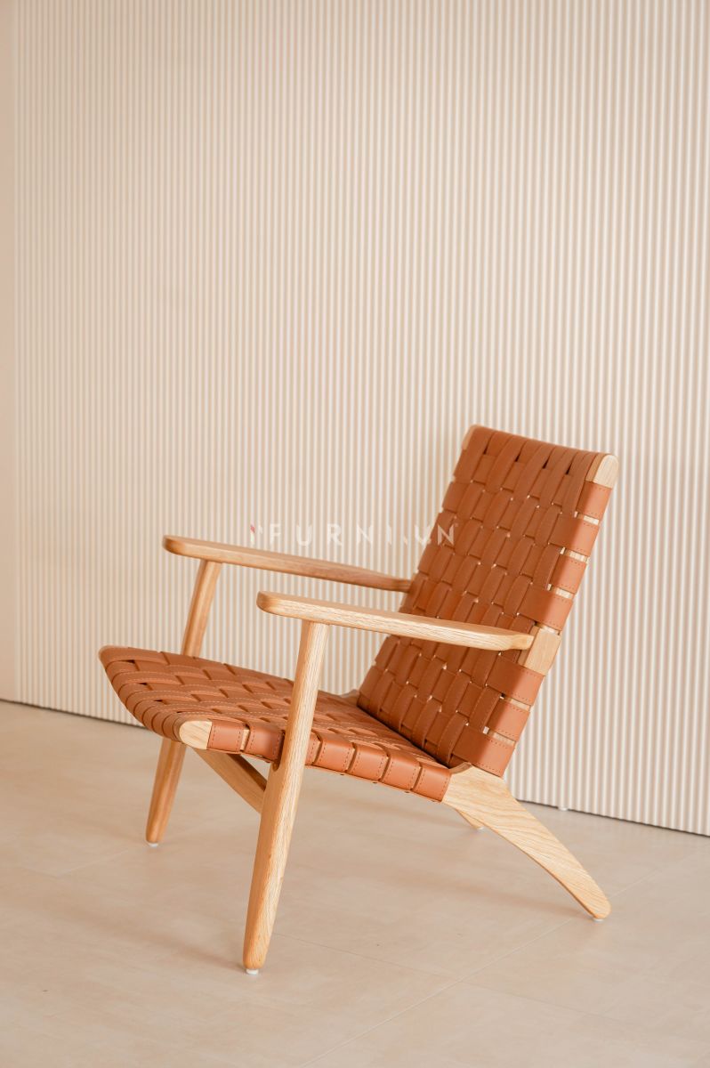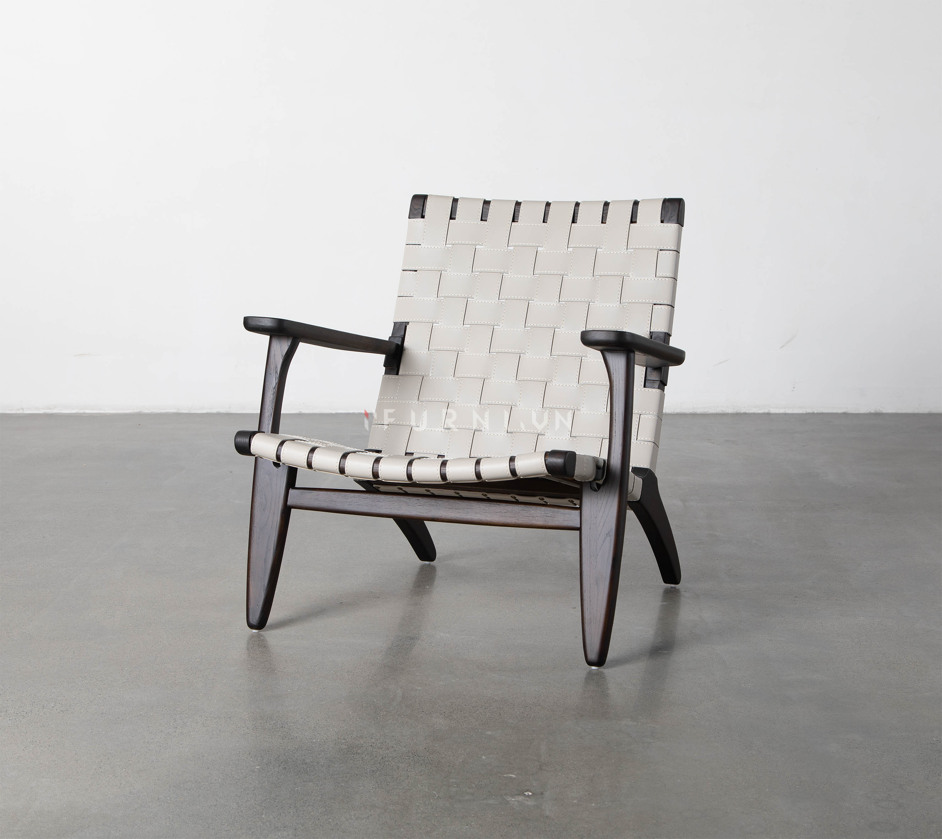 GHẾ THƯ GIÃN DIME FERGUSON là chiếc ghế thư giãn thiết kế độc đáo, kết hợp khung gỗ tự nhiên chắc chắn cùng lưng ghế đan tay bằng da yên ngựa cao cấp. Với kiểu dáng tối giản nhưng tinh tế, sản phẩm mang lại cảm giác thoải mái, ấm áp và là điểm nhấn sang trọng cho mọi không gian sống.