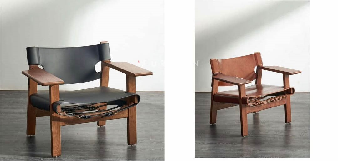 Mang phong cách mạnh mẽ và tinh tế, với khung gỗ sồi vuông vắn kết hợp da yên ngựa cao cấp. Thiết kế tay vịn rộng và tựa lưng thấp giúp bạn thư giãn tối đa, đồng thời trở thành điểm nhấn sang trọng cho không gian sống.